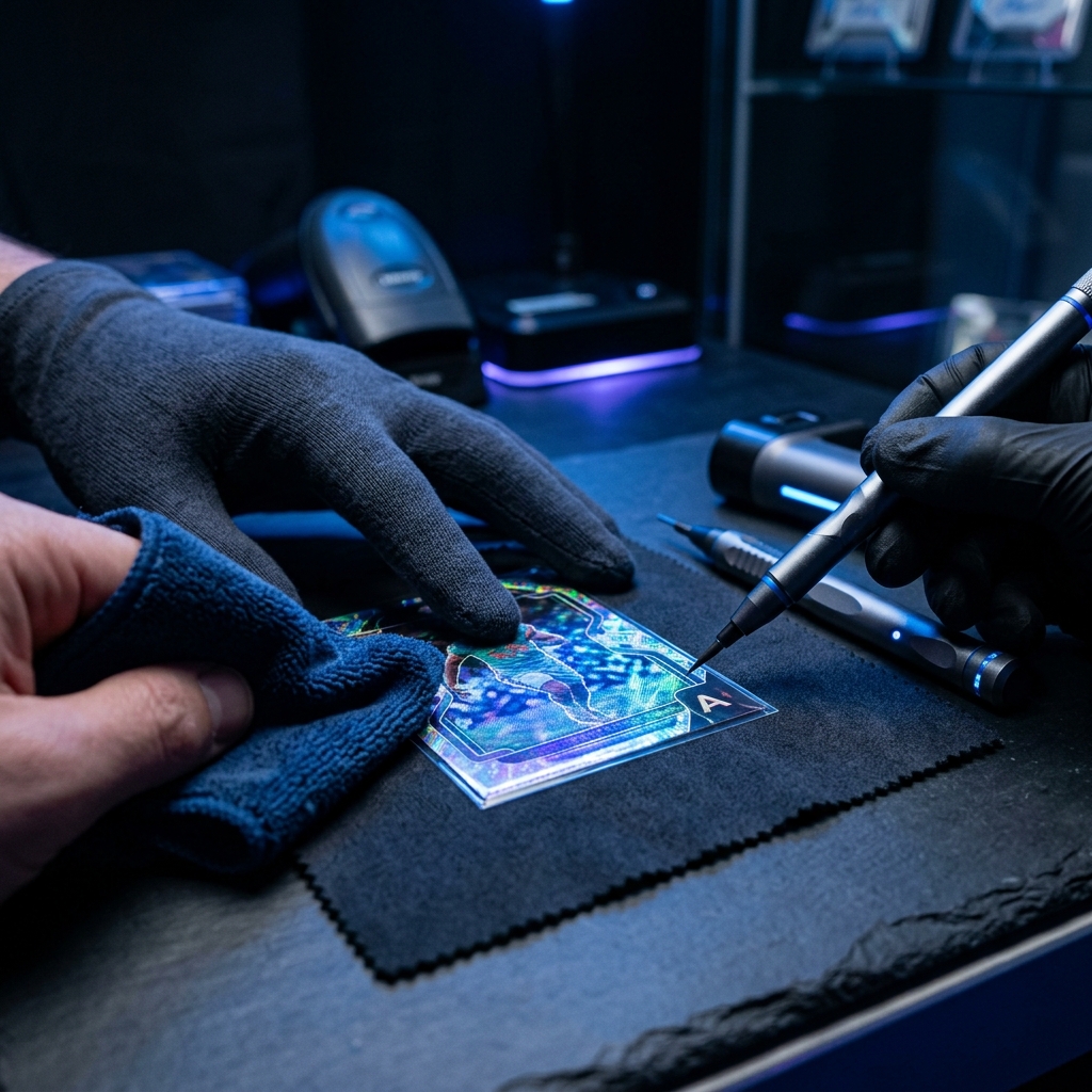 Archival-grade surface preparation designed to put your card's best face forward before submission.